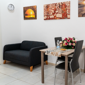 In realtà si tratta di un piccolo albergo, dove le stanze contengono una camera da letto, una cucina, un piccolo ingresso con un tavolo e un divano, e persino un balcone con un piccolo giardino. C'era tutto ciò di cui avevamo bisogno: una cucina ben attrezzata, lavatrice con ferro da stiro e un piccolo ferro da stiro, due condizionatori, ecc. Tutto è nuovo, pulito e funziona bene. Il proprietario (o gestore) è molto gentile e sempre pronto ad aiutare. In breve, per questo prezzo, l'appartamento ha superato di gran lunga le nostre aspettative.